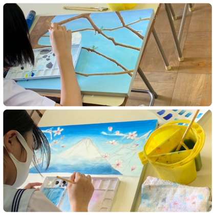 文化発表会に向けての作品作りに取組んでいます。各自が思い思いの絵を描いています。学習者用端末を開いて、お気に入りの画面を描写している生徒もいます。創造の世界が現された作品の仕上がりが楽しみです。