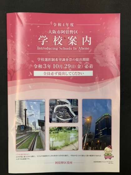 学校選択制で入学を考えておられる方は、阿倍野区役所への希望調査票の提出期限が10月29日(金)必着ですので間に合うようにご提出ください。