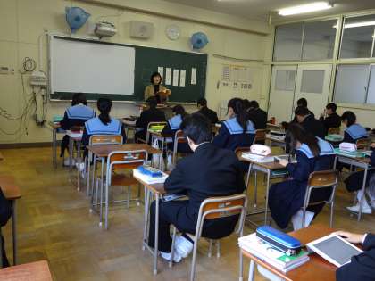 国語の授業では早速タブレットPCを活用しました。小学校の時にも使ったことがあるという生徒が多いようです。