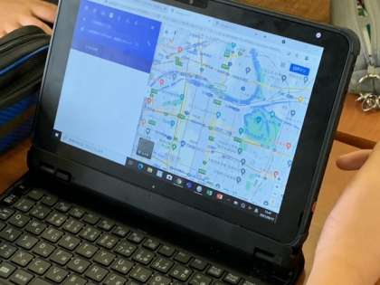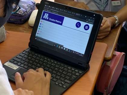 各自グループごとに学習者用端末を使って、大阪メトロの時刻表、下車地の地図と見学場所を調べました。
