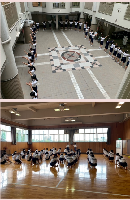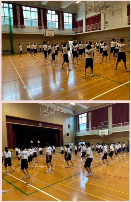 4つの団に分かれて、応援パフォーマンス練習をしました。応援リーダーが中心になって、音楽を流し、リズムに合わせて振付確認をしました。