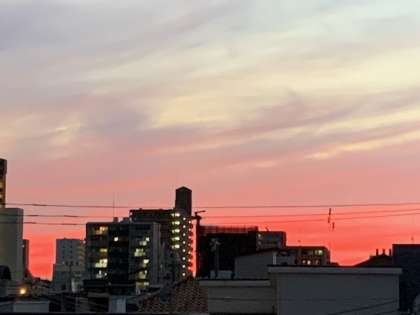 夕暮れ時になると西の空が茜色に染まりました。真っ赤な夕焼けの空が広がり幻想的な世界を映し出しました。改めて自然の美しさを感じました。