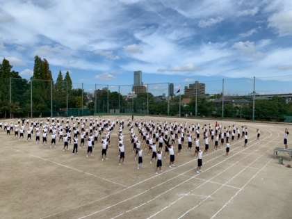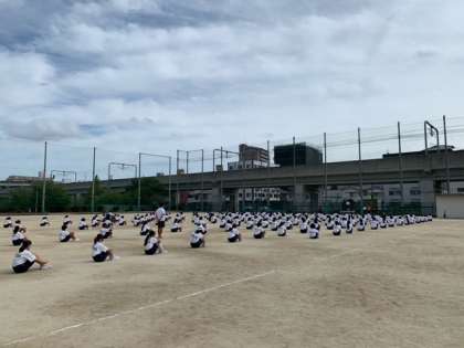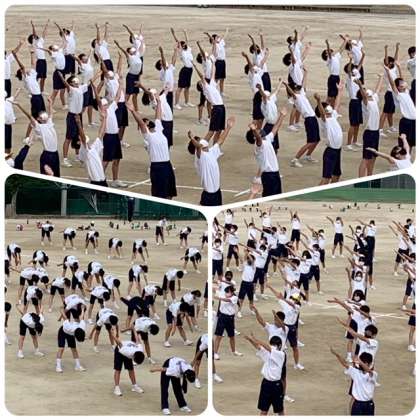 開・閉会式の確認とラジオ体操第2を行い、その後、団対抗リレーと応援パフォーマンスを練習しました。