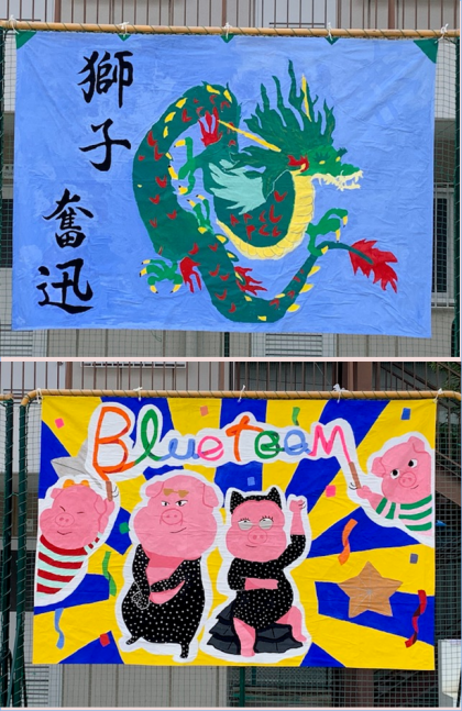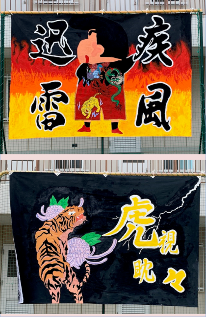 スローガンと各団旗に思いが込められて美しく描かれました。
