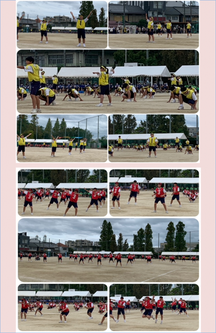 ついに発表の時がきました。この応援パフォーマンスは各応援団のリーダーが夏休み中から取り組んできたメインイベントです。3年生を中心としたリーダーが考えた振付を、団ごとで全員がマスターし披露しました。