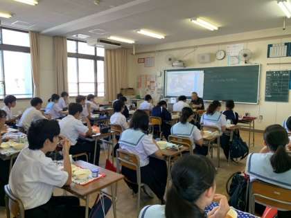 緊急事態宣言は解除されましたが、黙食は続いています。スクリーンに映し出された動画を見ながら静かに食べています。