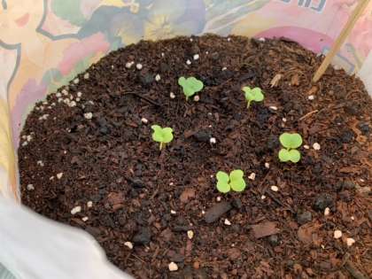 南玄関に並べた園芸の土の中から大根の双葉が顔を出しています。種を蒔いてから6日目の様子です。生徒が毎日大切に育てています。すくすく成長した大きな大根の収穫できる日が楽しみです。