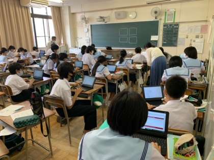 読む人を納得させるレポートの書き方について学習しました。コラボノートのアプリを使うことによって、他の人の様々な意見を知り、共有することができます。ICT活用は授業を手助けする必要不可欠なものになっています。