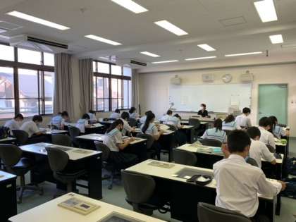 1・3年生は美術室で、2年生はLL教室で行いました。総勢30名余りの生徒が放課後に残って自主的に学習に取り組みました。