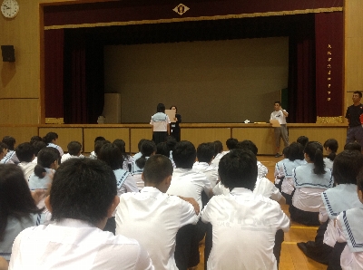 体育館で、2学期の始業式を行いました。暑さはずいぶんましになりましたが、蒸し暑さの残る体育館での始業式です。夏休み中の部活動や行事の入賞者に表彰状を伝達していただきました。そのあと、校長先生のお話がありました。2学期は大きな行事があり、クラス皆で協力し、一人ひとりが20%の我慢をすることが大切だという内容でした。