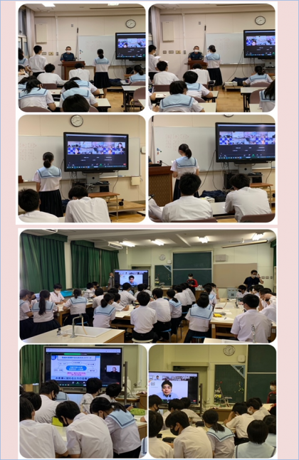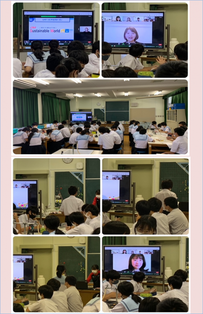 2年生はSDGsに取組まれている企業の方とオンラインで結び、具体的な取組み方法や重要視している点などの話を直接聞き、それに対して質問をしました。