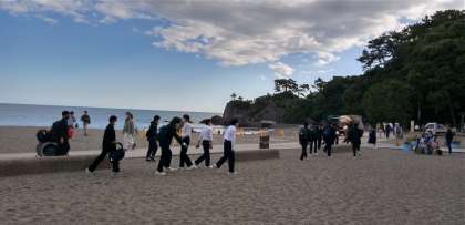 龍王宮をバックに学級写真と学年写真を撮ります。