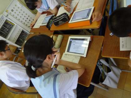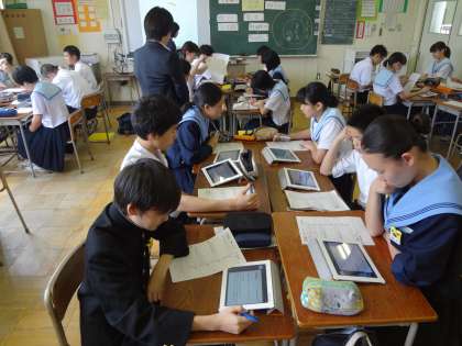 本日の授業風景です。2年生の数学と3年生の国語のようすです。視察に来られる方々が授業におけるICTの活用のようすをご覧になります。