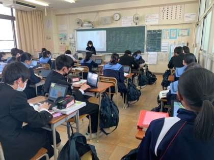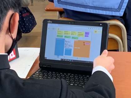 2回の朗読を聞き、学習者用端末に用意しているコラボノートEXを使って、予め作成している各段落の要約を、構成ごとに分類していきました。