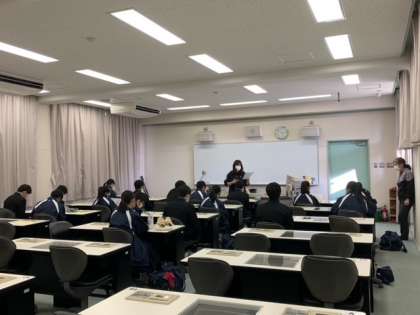 2級・準2級・3級の二次試験である面接を受ける生徒が集まり、英語科の先生より、説明と面接指導を受け、キャメロン先生が面接練習を行いました。