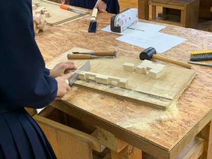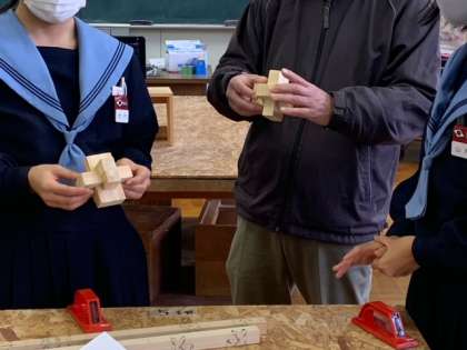 角材を寸法通りに加工し、組木パズルを作成しました。