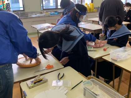 台座にスポンジを張り、布か革を被せクッション部分を作製しました。
