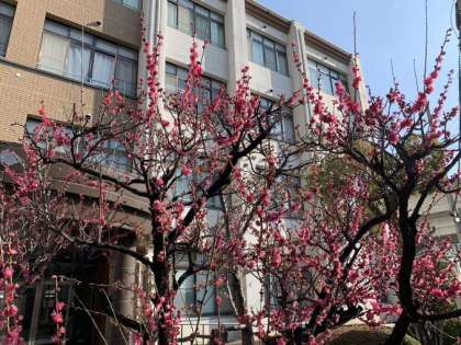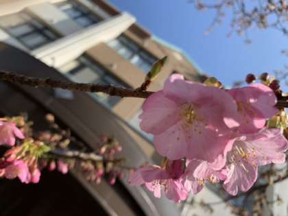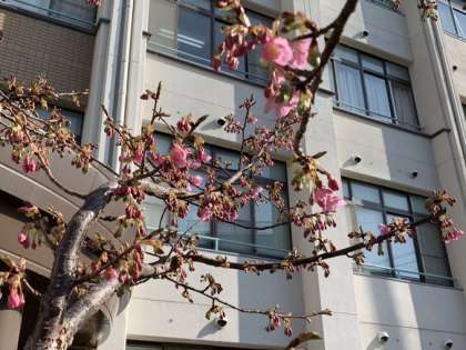 15年ほど前の創立60周年で植えた記念樹が、春のような陽気で一気に咲き始めました。