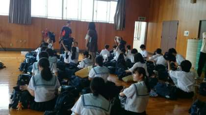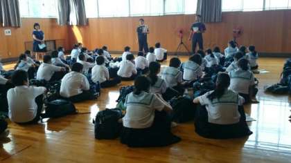 1年生も、午後に事前指導を行いました。荷物を広げ、忘れ物がないか点検!