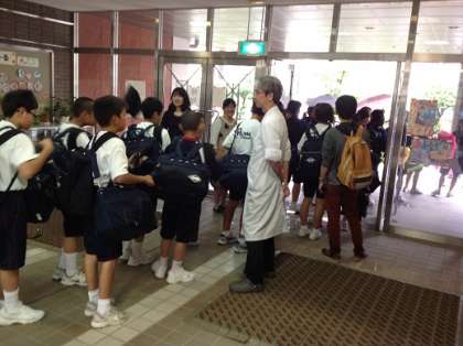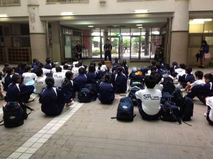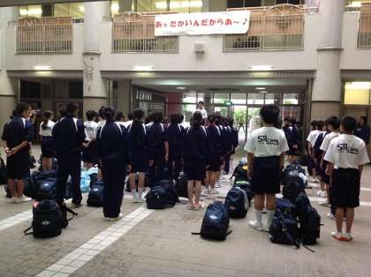 6月3日(水)朝からあいにくの雨でしたが、それを吹き飛ばすように1年生は全員元気に、大阪市立信太山青少年野外活動センターへ向けて出発しました。