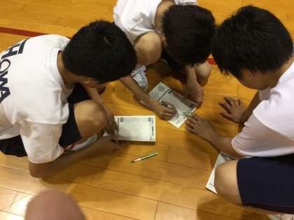 6月3日(水)2年は体育館で、「上体起こし」「握力」「長座体前屈」「反復横跳び」「立ち幅跳び」などスポーツテストをしました。