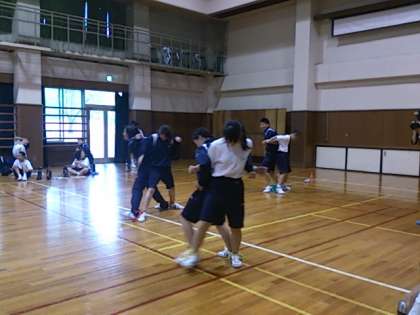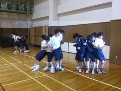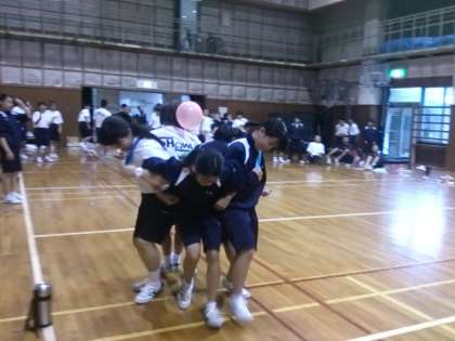 室内オリンピック。体育館に応援の声が響いています。とってもいい雰囲気の時をみんなで共有しています。カニカニレース。スクラムリレー。