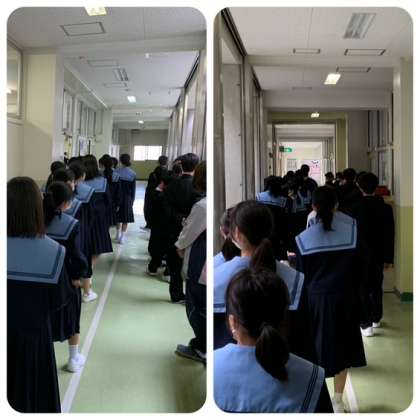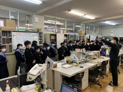 1年生はクラスごとに先生の説明を聞きながら、校舎を見学して回りました。