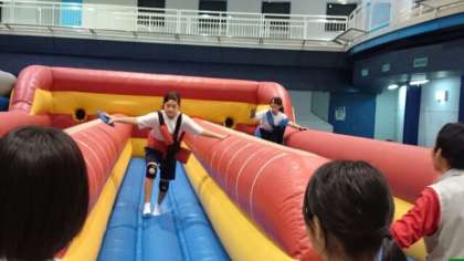 スペースキャンパス体験プログラムは、写真の通り。普段経験できない貴重な体験です。将来、宇宙飛行士をめざそうという人が出てくるのでは?