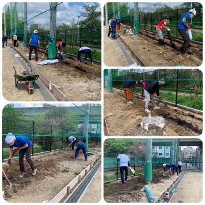 長池地域活動協議会の緑花部会が昭和中学校PTAと協力して、グランド北側で「ひまわり」を育てることになりました。