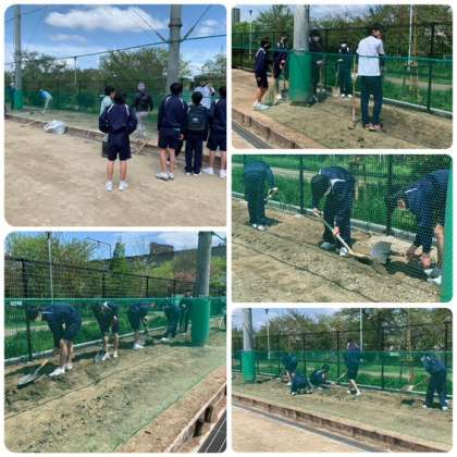 部活動前や終わった後の生徒も駆けつけて畝作りを手伝いました。