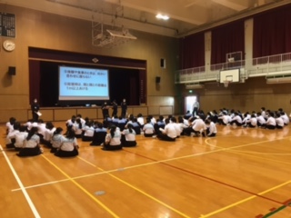 5月6日、3年生は5、6限に体育館で修学旅行の事前指導が行われました。しおりの読み合わせてを行い、準備は万端です。コロナ対策もしっかり行い、思い出に残る修学旅行にしましょう。