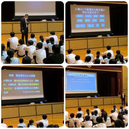 校長先生からの人権についての発問に、みんなで思い浮かぶイメージを考えて述べました。みんなが楽しい学校生活を送るにはいじめは決してあってはならないことです。今日はみんなでその再確認をした日です。