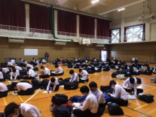 5月10日、3年生は明日から修学旅行に向け、最終確認を体育館で行いました。荷物の忘れ物もないようです。後は、体調管理と明日、必要なもの準備だけです。最高の思い出となる修学旅行にしましょう。