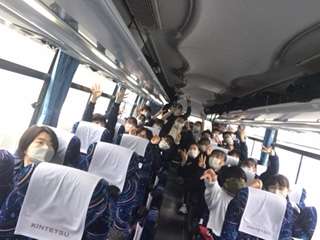 バスは予定通り出発しました。雨が心配ですが、バスの中では、楽しさ満載です。