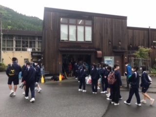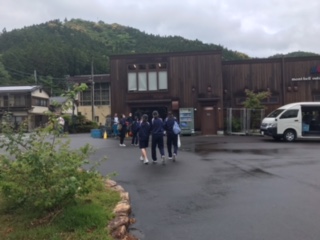 モンベルアウトドアビレッジにつきました。これからラフティングの準備です。今は、小雨です。
