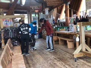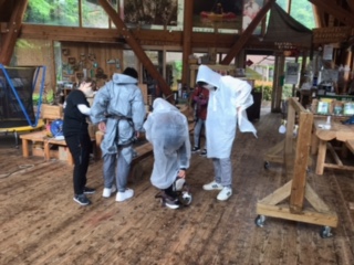 無事にフォレストアドベンチャーも終わり近づきました。小雨の中、何とか活動ができました。この後は、美馬町市民サービスセンターへ移動して、民泊でお世話なります。地元の人々との交流が楽しみですね。