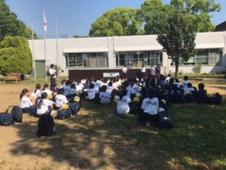 宿舎につきました。入所式の開催です。あいさつもしっかりできています。
