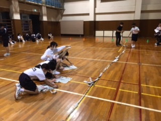 室内オリンピック、マラソンと題して、新聞を長く切り取っていく競技です。