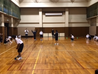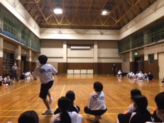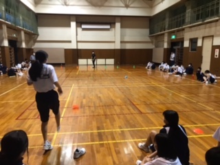 砲丸投げとして、足でスリッパわ飛ばします。中々難しいですよ。