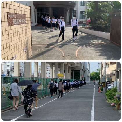晴天のもと、2年生は神戸方面に校外学習に行きます。