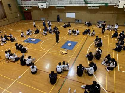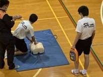 二人一組になって、AED使用時の連携と使用方法を学びました。