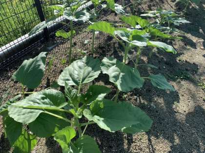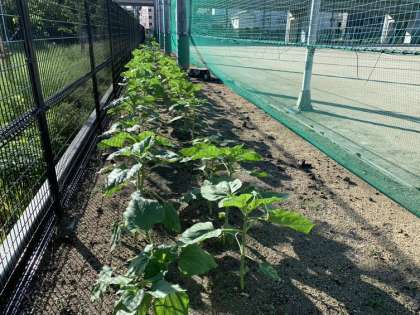 ひまわりの種を植えてからちょうど1か月が経ち、50cmほどの背丈にまで成長しました。