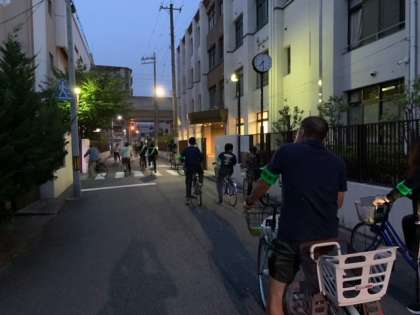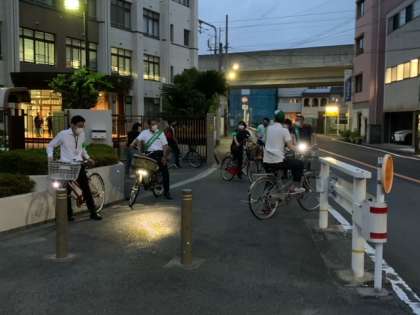 総勢30人を超えるメンバーが集まり、校区内を北と南に分かれて自転車で周りました。