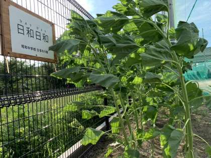 10日前までは草丈90cm程だった「ひまわり」が、なんと1m80cm程にまで成長しています。真夏のような暑さと梅雨の適度な雨で一気に成長しています。