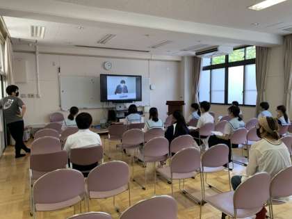 英語の面接試験に向けて、3級受験者対象に「英語面接の心得」のビデオを見て、面接時の注意を確認しました。