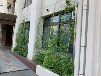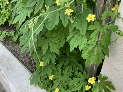 ふれあい委員生徒が植えたゴーヤの蔓も2階に届きそうな勢いで伸びています。水やり当番さん、ご苦労様です。