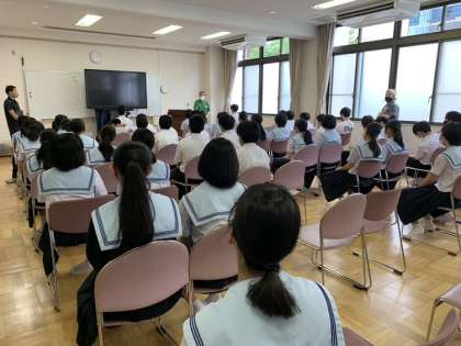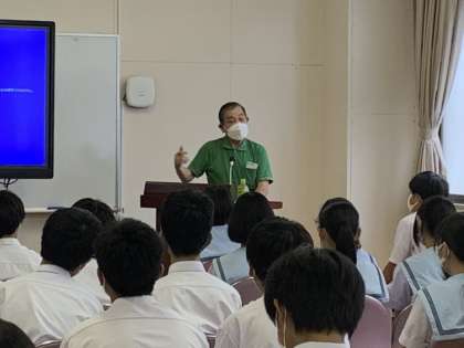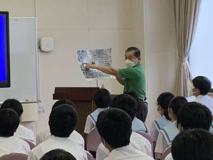 桃が池市民活動センター所長の大久保様をお招きし、田辺模擬原爆について語っていただきました。広島・長崎への原爆投下までに、訓練として38発もの模擬原爆が落とされていたことも知りました。平和の尊さを確認した貴重な時間となりました。