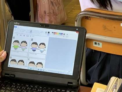 自分の個性を生かしながら周りの意見を聞いて、季節感を感じる服装の色や柄・形をTeamsのファイル機能を活用して考えました。ペイントのペンキツールを使って着色もしました。