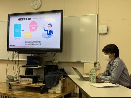 和歌山大学教職大学院教授 豊田充崇 先生をお招きし、研究授業のご高評をいただきました。そして、これからの学校教育ICT活用が進むべき方向性〔データ駆使型教育〕についてご教示いただきました。