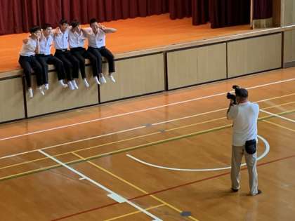3年生は班ごとに分かれて卒業写真用のグループ写真を撮りました。